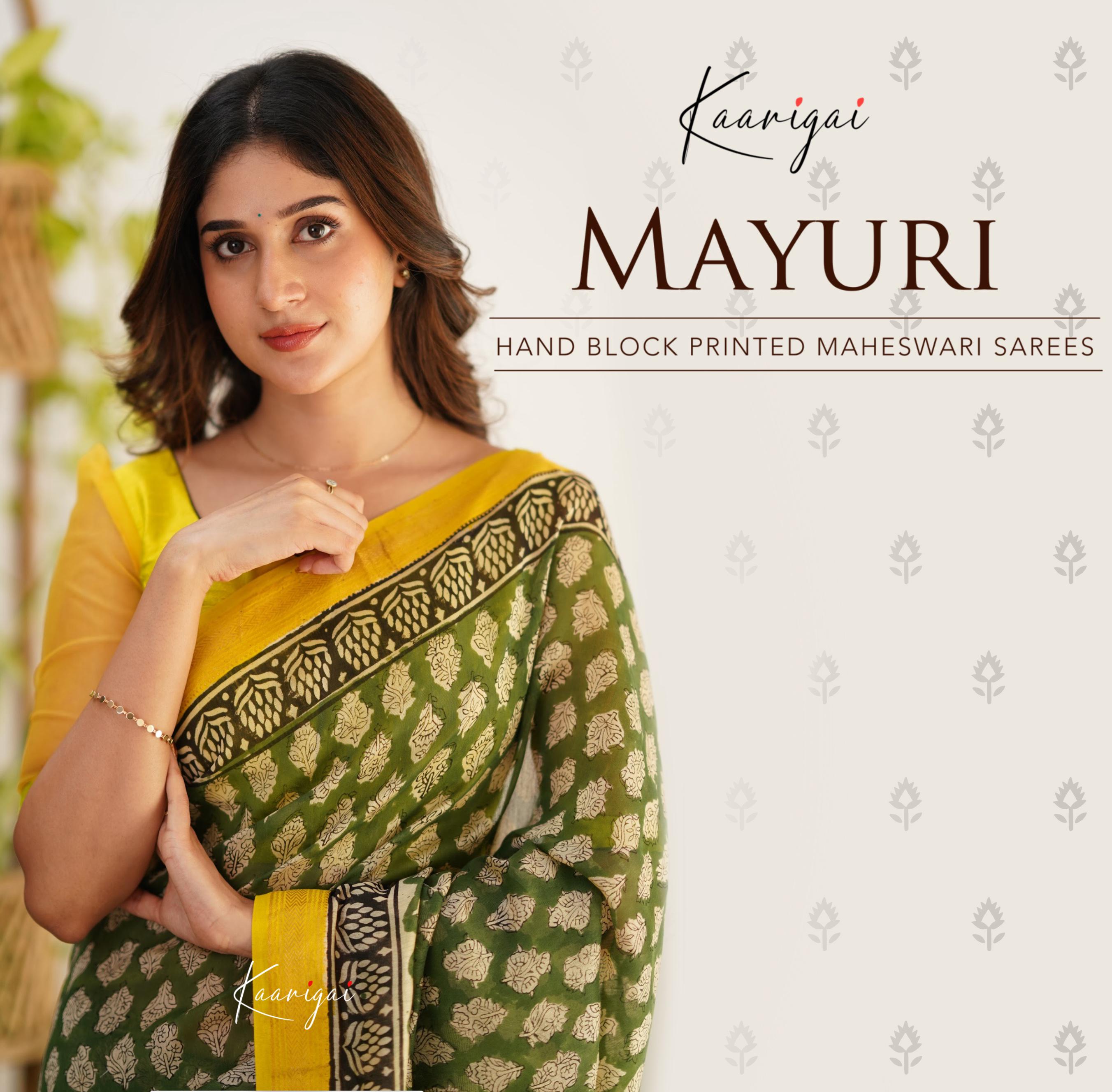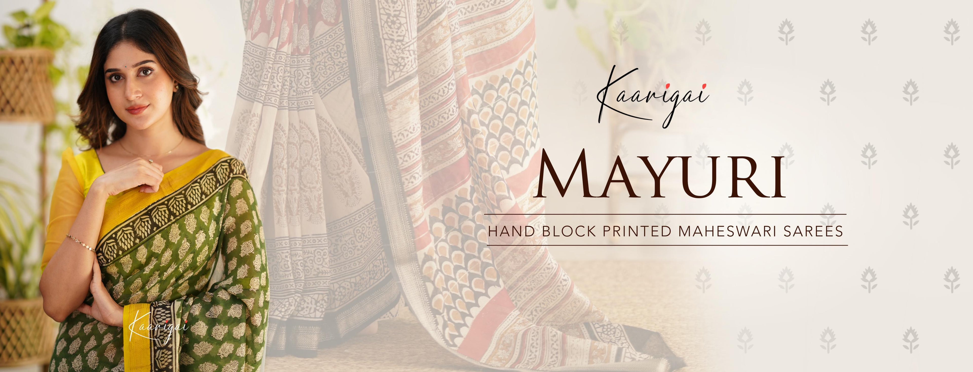 Mayuri Hand Block printed Maheswari Saree - Rani Pink